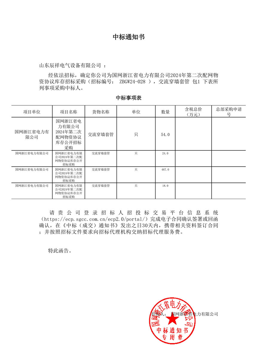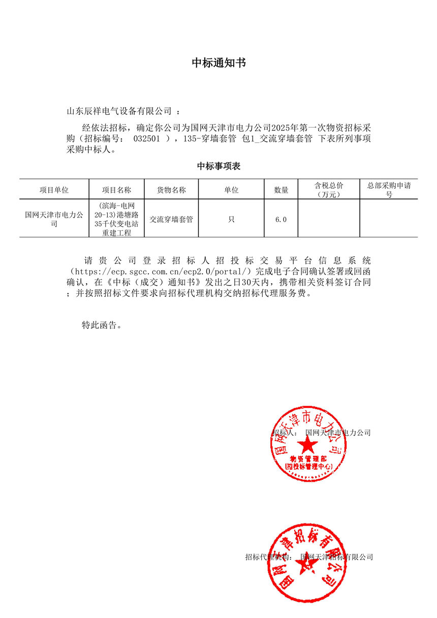 2025.02.14 110kV瓷絕緣穿墻套管中標通知書